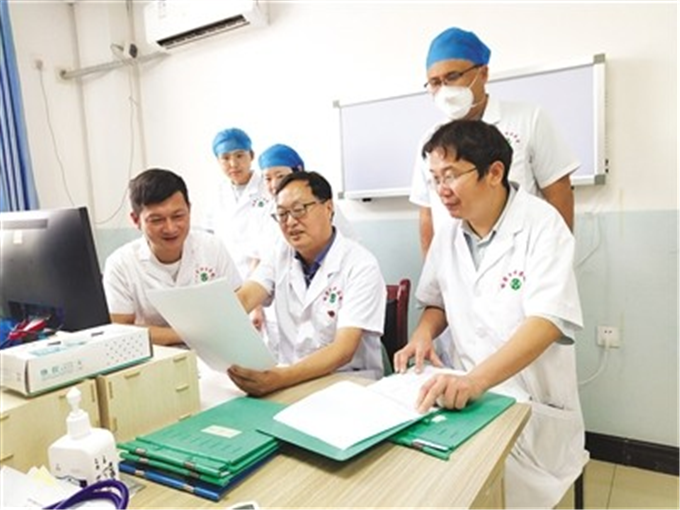 吳春生、王玉璽、劉國嶺(前排中、左、右)與臨床醫(yī)生討論疑難病例。