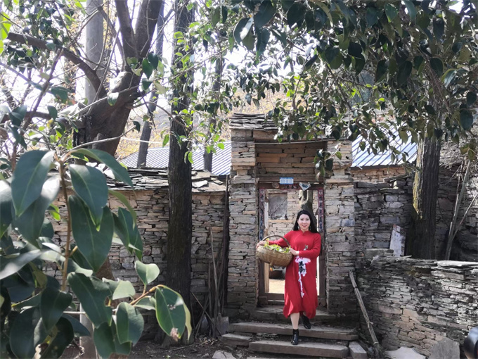 石頭村顧名思義村不離石,石不離村。石板路,石板墻,石板房。人在石上走,水在石上流,草在石上生,樹在石上長。石板路依山依坡,或崎嶇或逶迤,或徒峭或平坦,一直蔓延到山的深處。沿著石板路的兩旁,石板房依山而建,一座座,一棟棟,層層疊疊,錯(cuò)落有致。佇立期間,環(huán)顧四周,你不能不由衷感嘆先民們的勤勞和智慧。不毀山林,不用一木,利用大自然饋贈的千層石,就地取材,起屋建房,遮風(fēng)擋雨,傳宗接代,綿延香火。