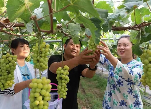 “我們的陽光玫瑰集花香、果香、清香于一身,果肉脆嫩香甜,被譽為葡萄界的‘愛馬仕’,市場前景廣闊。今年,我們采用精細(xì)化管理,葡萄的品質(zhì)特別好,銷路也很廣。一部分銷往周邊超市、批發(fā)市場,多數(shù)訂單產(chǎn)品遠(yuǎn)銷北京、上海、廣州等地。同時,也可來到園區(qū)品嘗、采摘葡萄,一直持續(xù)到10月底。下一步,繼續(xù)擴大特色種植產(chǎn)業(yè)發(fā)展,做大做強這一‘甜蜜’事業(yè)。”莊園負(fù)責(zé)人張紅波說。